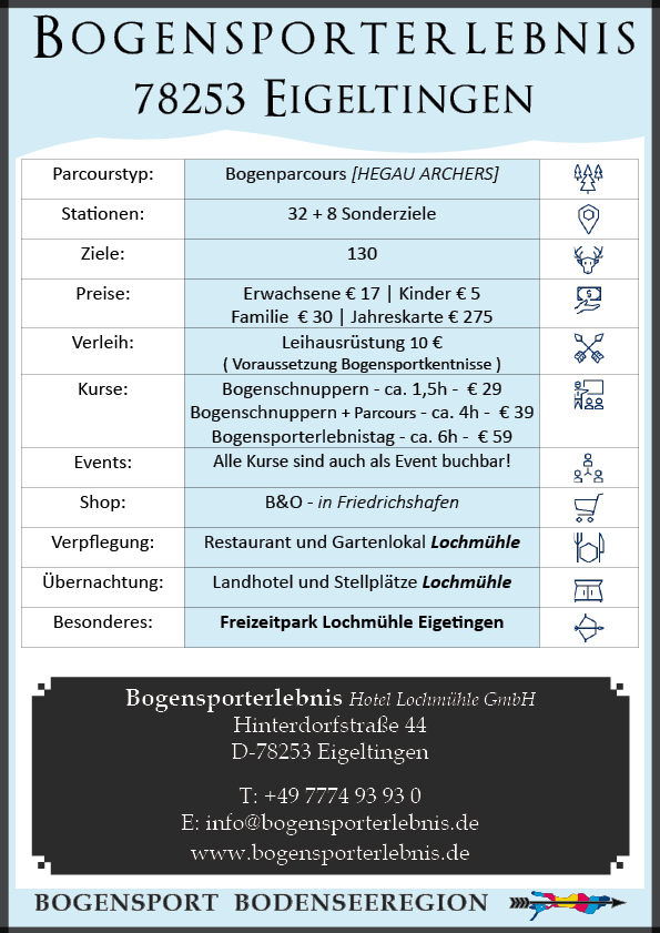Die Leihgebühr beinhaltet NICHT die Gebühr für die Nutzung des Bogenparcours der Hegau Archers e.V.!